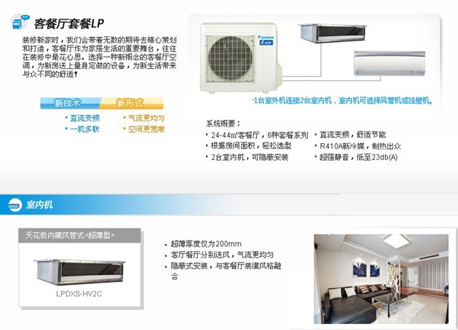 1臺(tái)室外機(jī)連接2臺(tái)室內(nèi)機(jī),室內(nèi)機(jī)可選擇風(fēng)管式室內(nèi)機(jī)或掛壁式室內(nèi)機(jī),靈活對應(yīng)